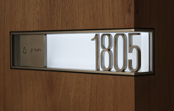 View Project GalleryNot only does the incorporation of lighting and electronic features serve a practical function, it provides an opportunity for eye-catching designs. We have completed several projects including the integration of doorbells, “do not disturb” and “make-up room” indicators.